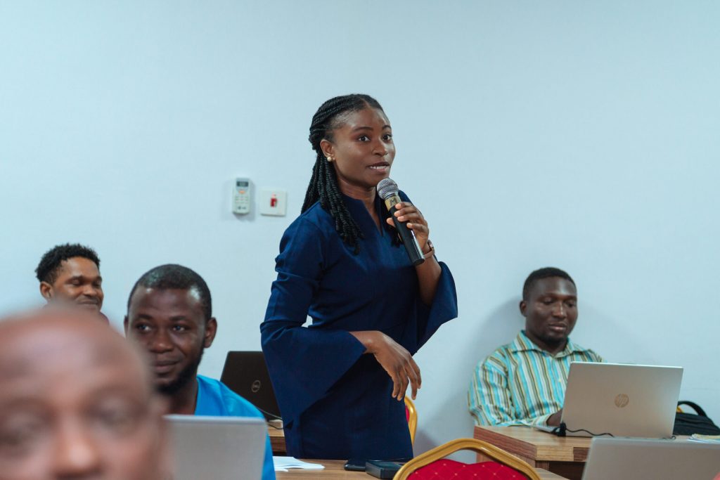 What followed his remarks was a lively 15-minute icebreaker, which allowed participants to introduce themselves and network. A significant part of that was the “Research Insight Tag-Cloud”, a rapid-fire, 10-minute discussion moderated by Maxwell Igweogu, a PhD student of the Department of Computer Science. That session effectively generated a collective visualisation of the knowledge levels of participants on the subject of Research Methodology and provided the facilitator a working knowledge of the training terrain.