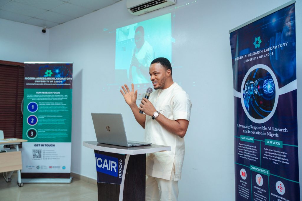 In his brief address. Dr. Sennaike ran the audience through the activities of NAIL-UNILAG and its three working groups. He emphasised the critical institutional role of the Lab in ensuring that Nigerian research meets global standards, particularly as AI becomes central to scientific inquiry.