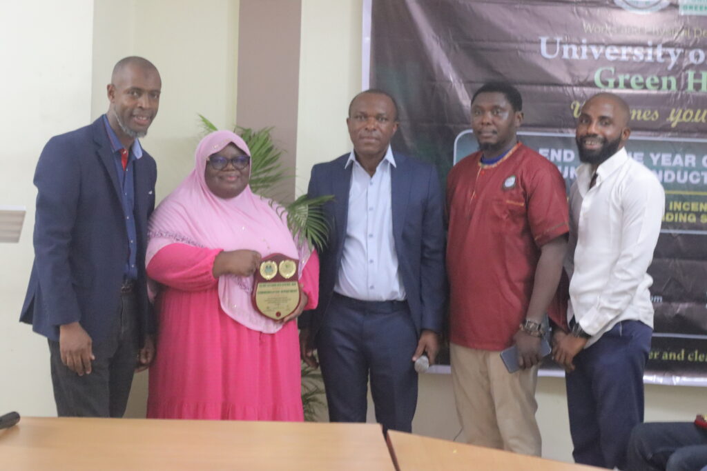 • Communication Unit:  Led by Mrs. Adejoke Alaga-Ibraheem, the unit was recognised for embedding the “Trash It – Reuse It” message and driving recycling literacy across campus; and for also anchoring the Green Revolution campaign of the University of Lagos.