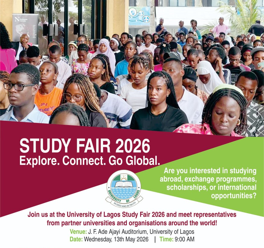 Are you looking to study abroad, secure scholarships, or explore exchange programmes? Then you need to REGISTER NOW for the University of Lagos (UNILAG) Study Fair scheduled for Wednesday, May 13, 2026 at the J.F. Ade Ajayi Auditorium at 9:00 a.m. Hosted by the the Office of Global Engagement and Strategic Partnerships (GESP), the UNILAG Study Fair 2026 will provide students and staff with valuable information on a wide range of international academic opportunities, including […]
